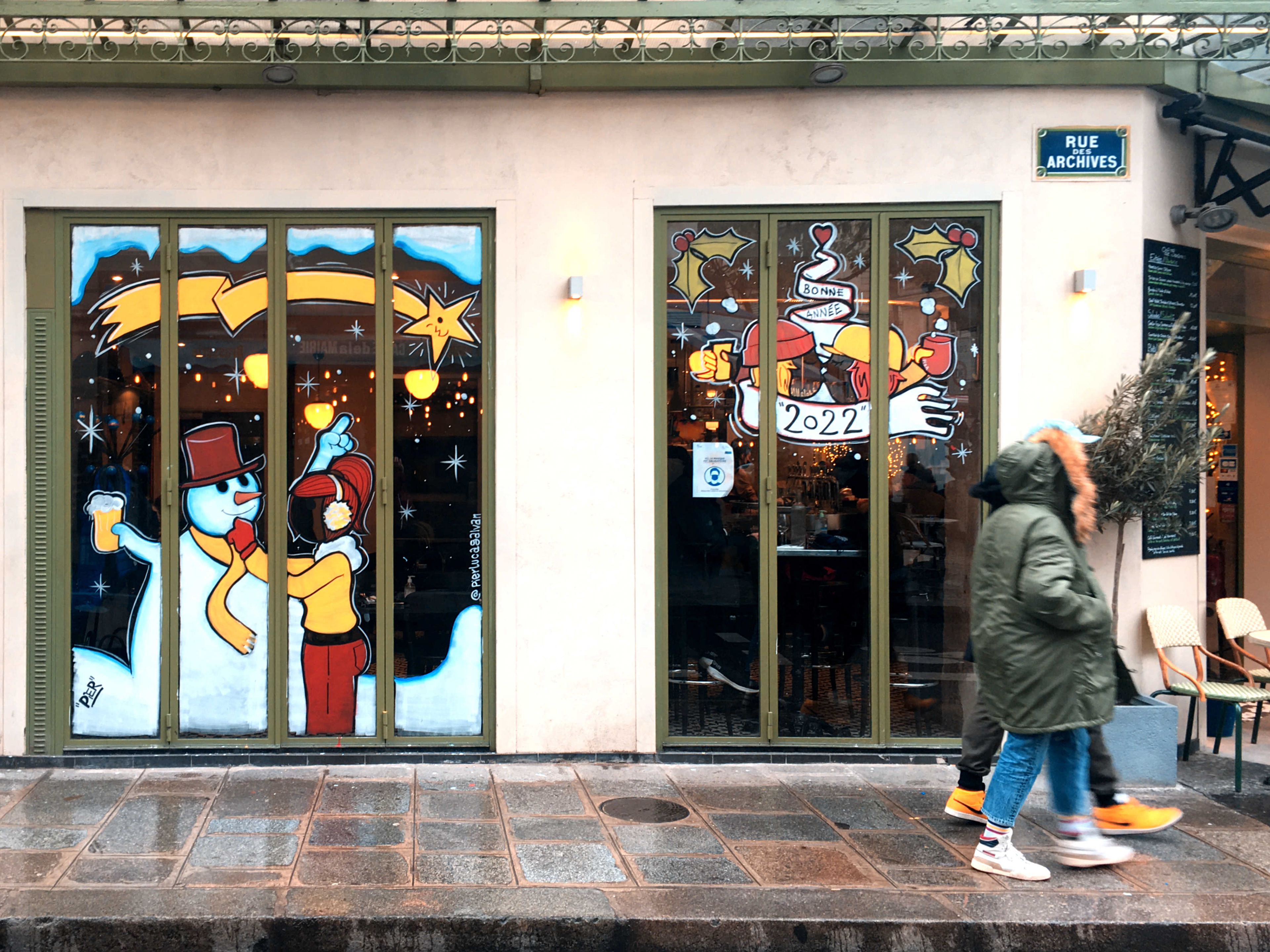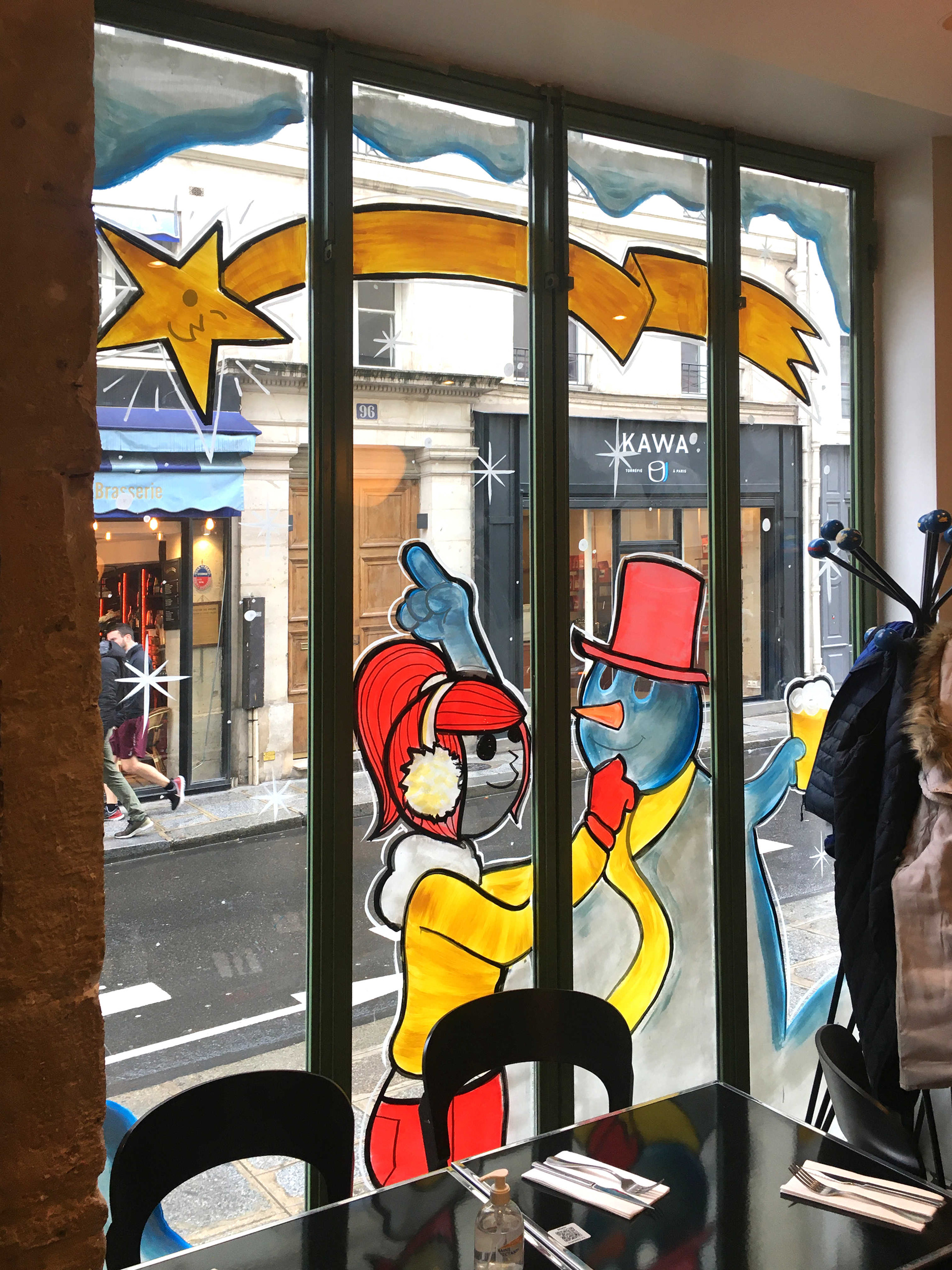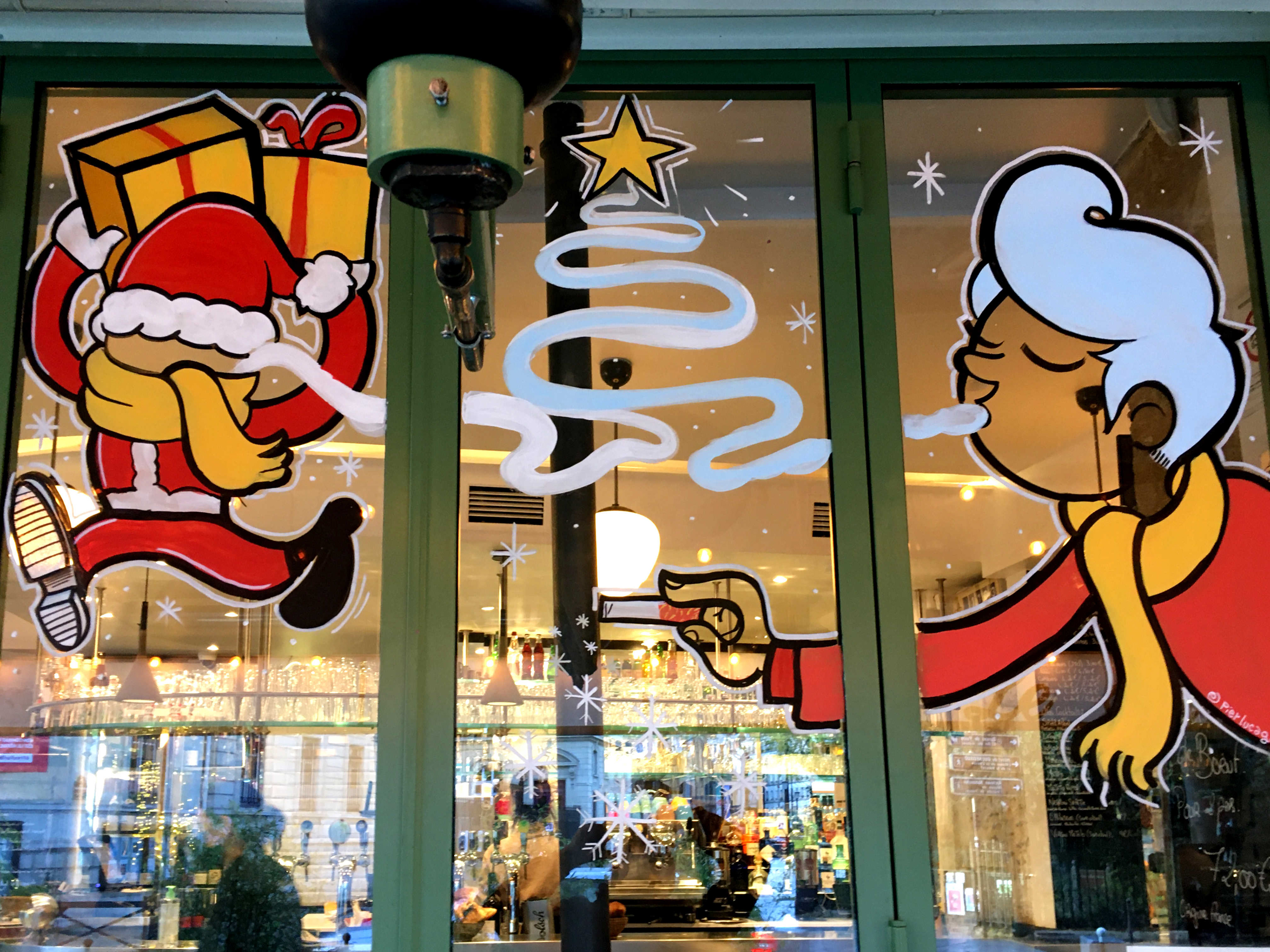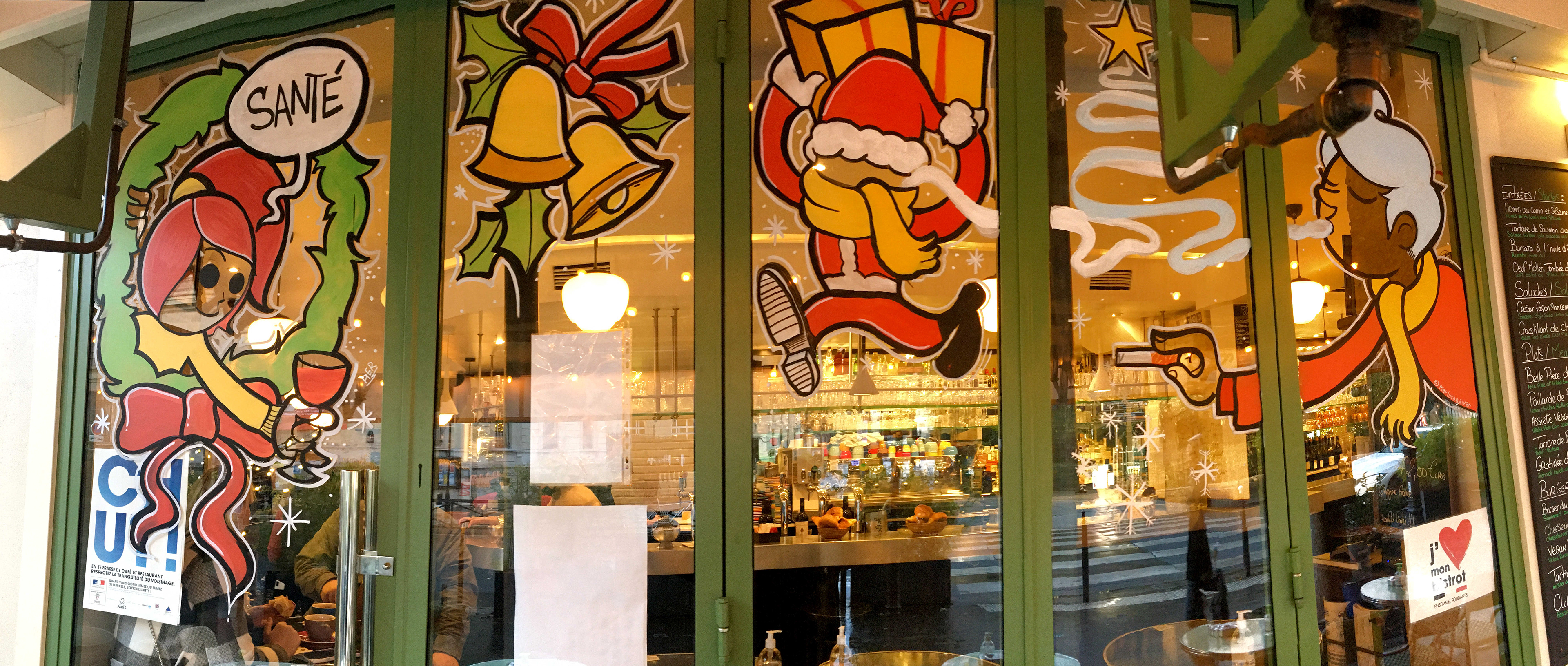 Christmas window painting for the bistrot "Sancerre" a very nice bistro in the heart of Marais neighborhood. Paris 2021