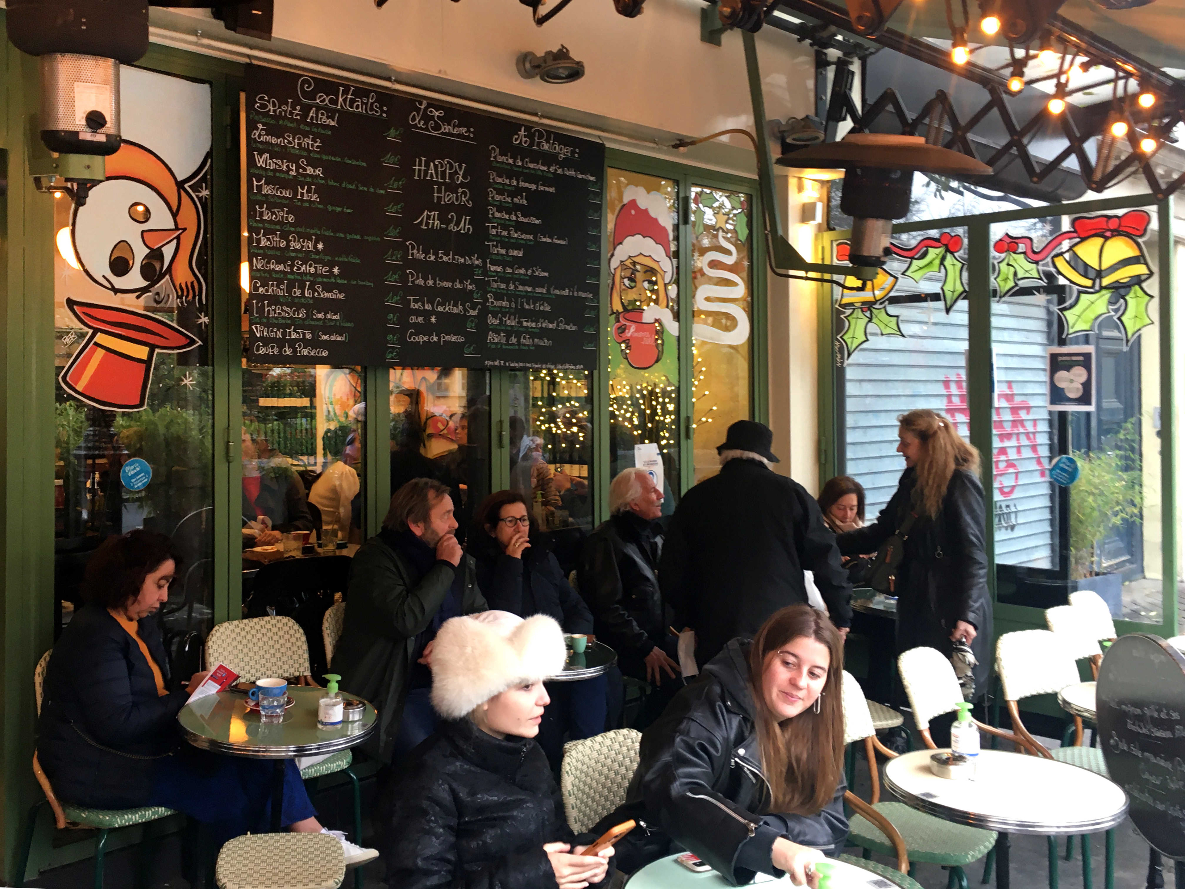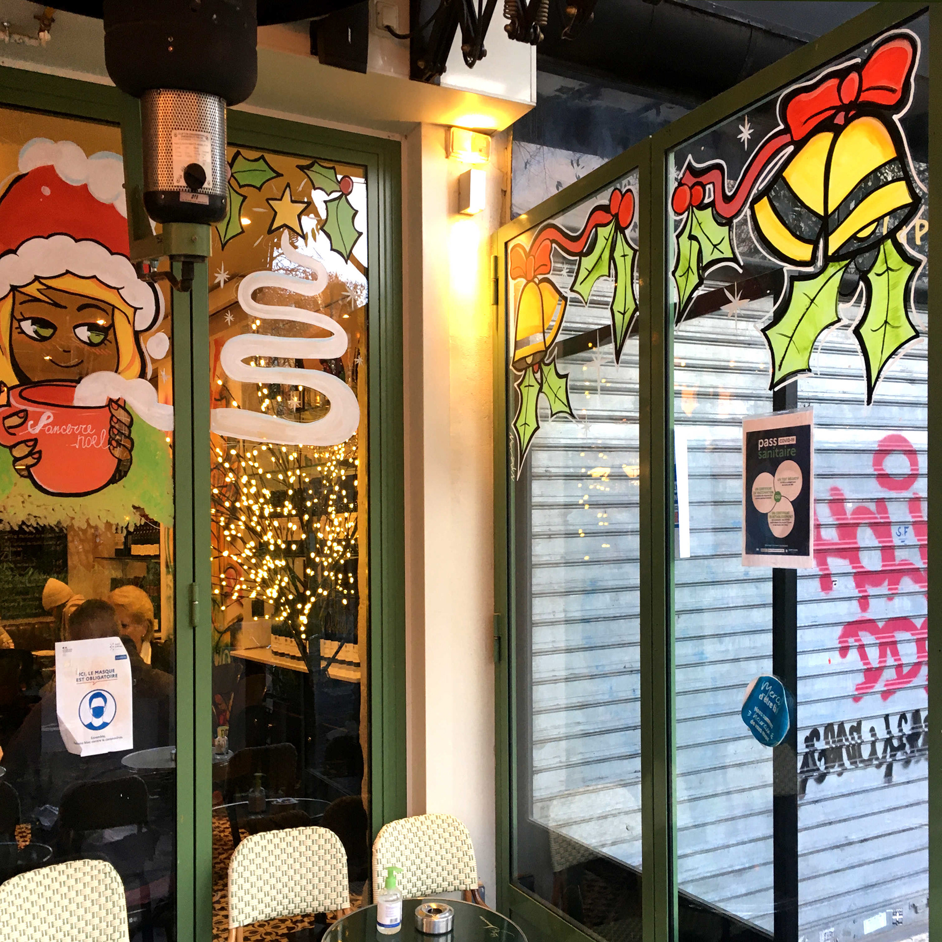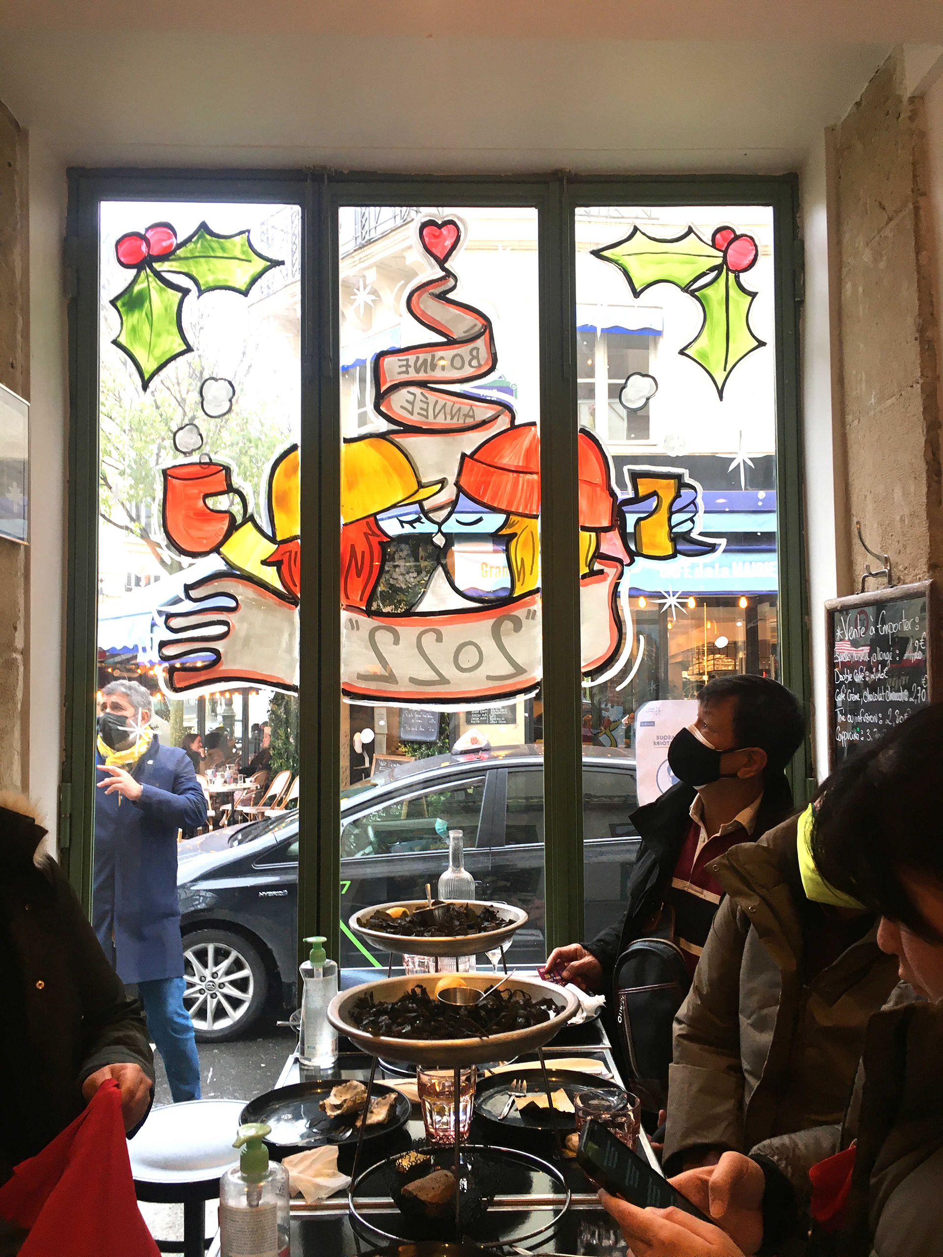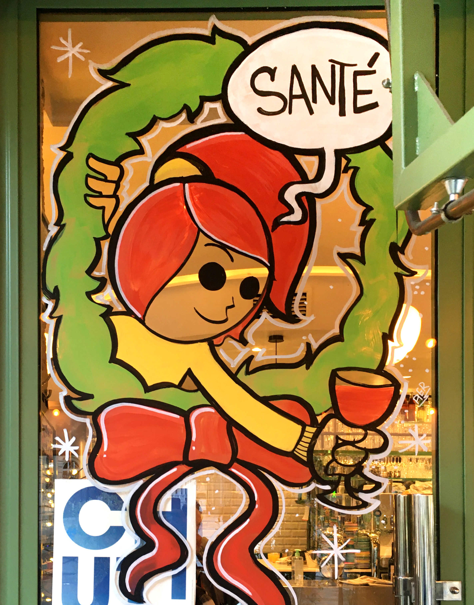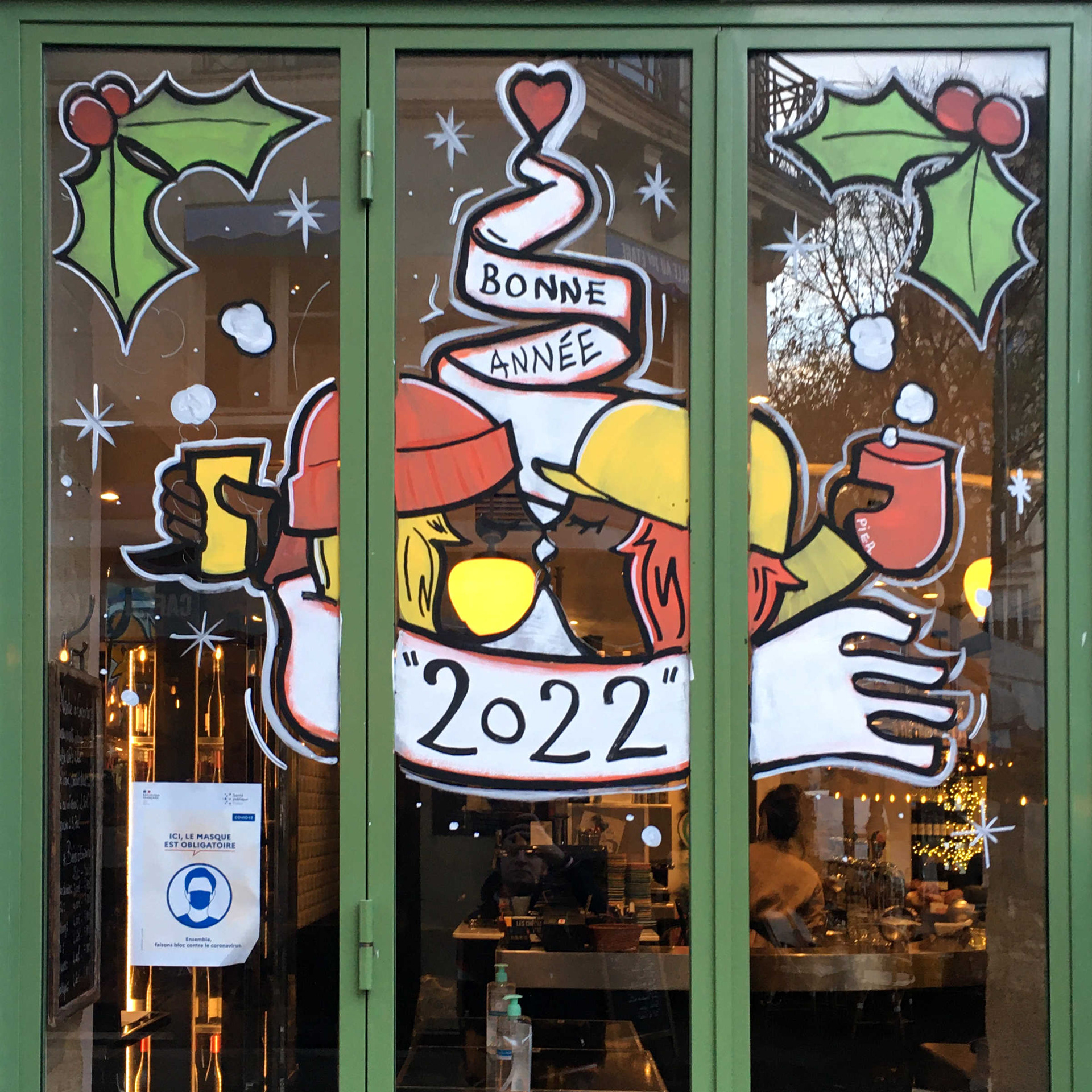 Christmas window painting for the bistrot "Sancerre" a very nice bistro in the heart of Marais neighborhood. Paris 2021